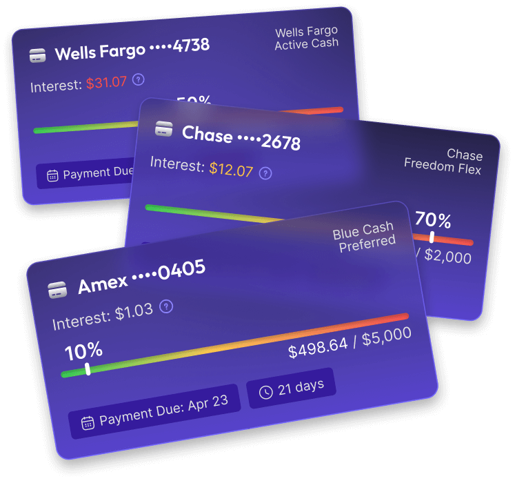 When you connect your credit cards via Plaid or Experian VantageScore, you enter credentials directly into secure forms from Plaid or Experian. We never collect, store, or access your usernames or passwords – they go only to your bank or Experian.